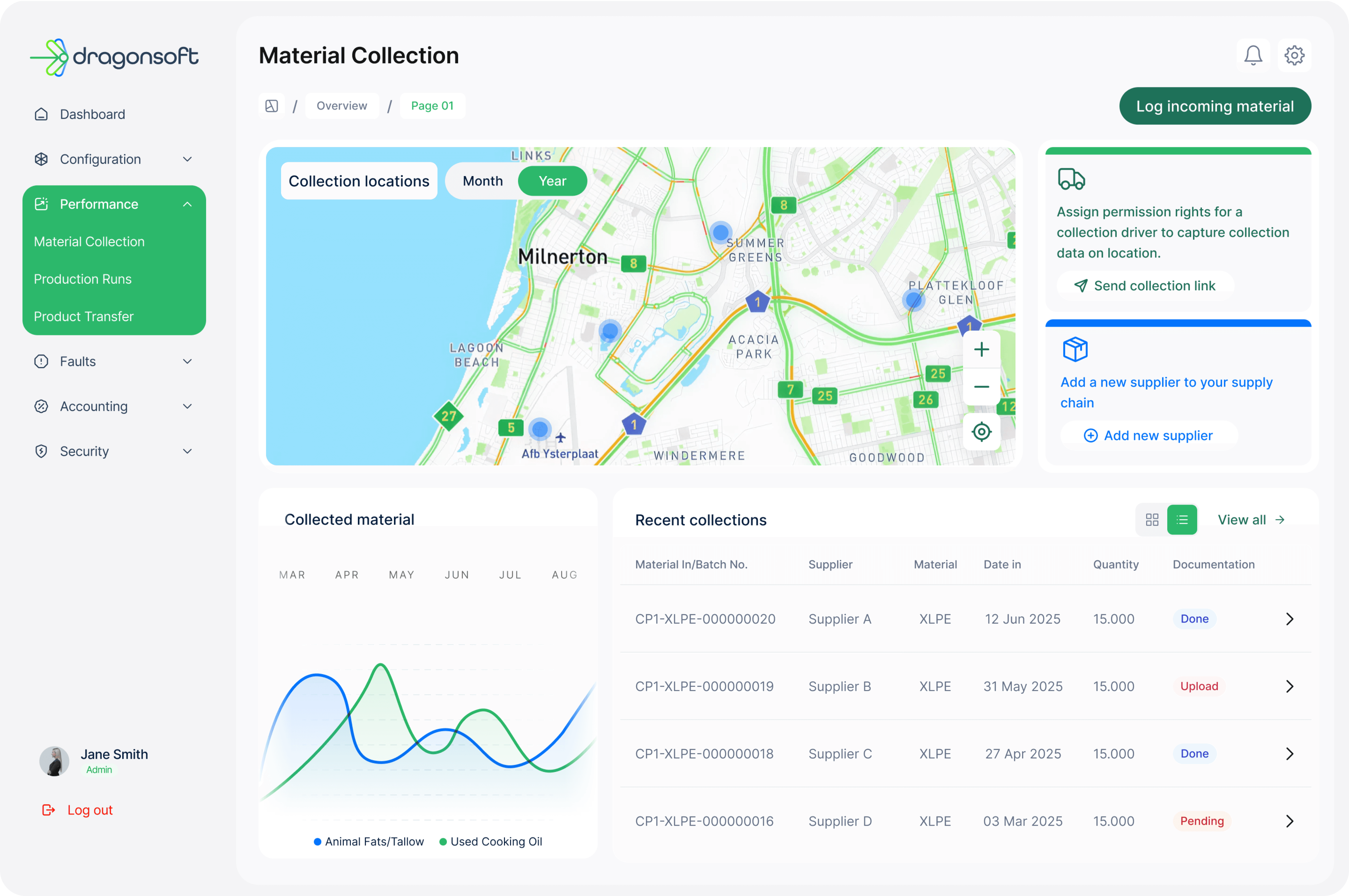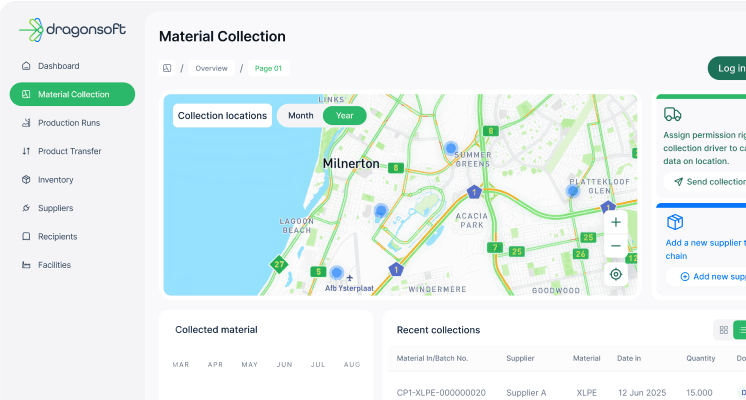 Log materials, monitor inventory, capture production runs, and follow transfers with full transparency. DragonSoft digitises the entire chain of custody, giving you unmatched traceability.