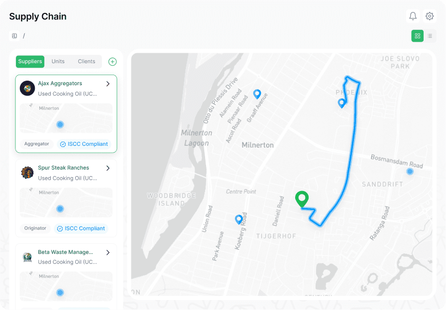 We digitise the chain of custody for biofuels and sustainable materials. This ensures that every step is verifiable, secure, and trusted, from waste to wing, waste to wheel, and waste to wave.